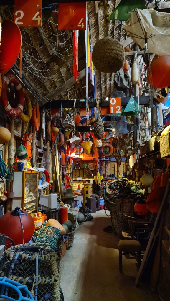 Vroeger werd alles wat op het strand gevonden werd gejut en mee naar huis genomen of zoals hier in het museum opgeslagen. Tegenwoordig zijn er strikte regels voor het jutten en opduiken. Wij zijn ook weer een stukje wijzer geworden.