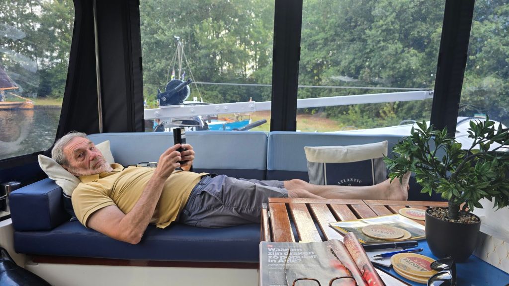 Gisteravond besloten om aan de hand van de diverse weer-apps te kijken hoelaat we zouden vertrekken. Onderweg regen geen bezwaar maar met af-en aanmeren liever droog weer. Dat zou rond een uur of 8 zijn, maar beter nog eerst een nachtje slapen en opnieuw kijken. Doel is om naar eiland de Schelp te gaan.