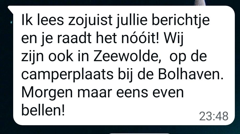 Bij het bekijken van de mobiel zit er een berichtje tussen van Carla naar aanleiding van onze blog.