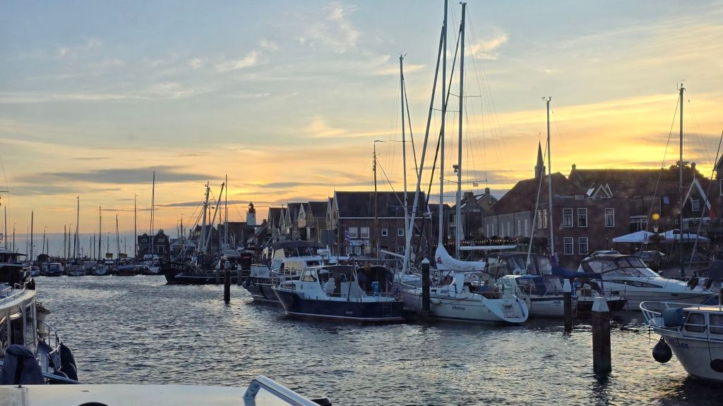 De wind is hier behoorlijk toegenomen. Zeker windkracht 5, de wind giert door de masten heen. We gaan nu even beraden wat we morgen gaan doen en welke richting te gaan varen. Met dit weer wil je niet het IJsselmeer op als het niet hoeft. We hebben een week de tijd om in Den Helder te komen en als we de weerberichten mogen geloven komen er na drie dagen zonder zon en mogelijk met regen, weer prachtige dagen. We slapen er nog een nachtje over.