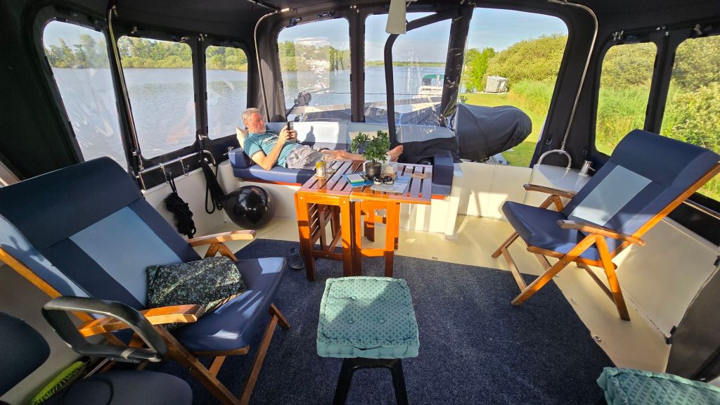 Vandaag vertrokken vanuit de haven en richting de Alde Feanen gevaren. Het is al behoorlijk druk op het water. Iedereen weet dat het een prachtig weekend gaat worden. Zo gaan wij nu ook alvast een mooi plekje zoeken.