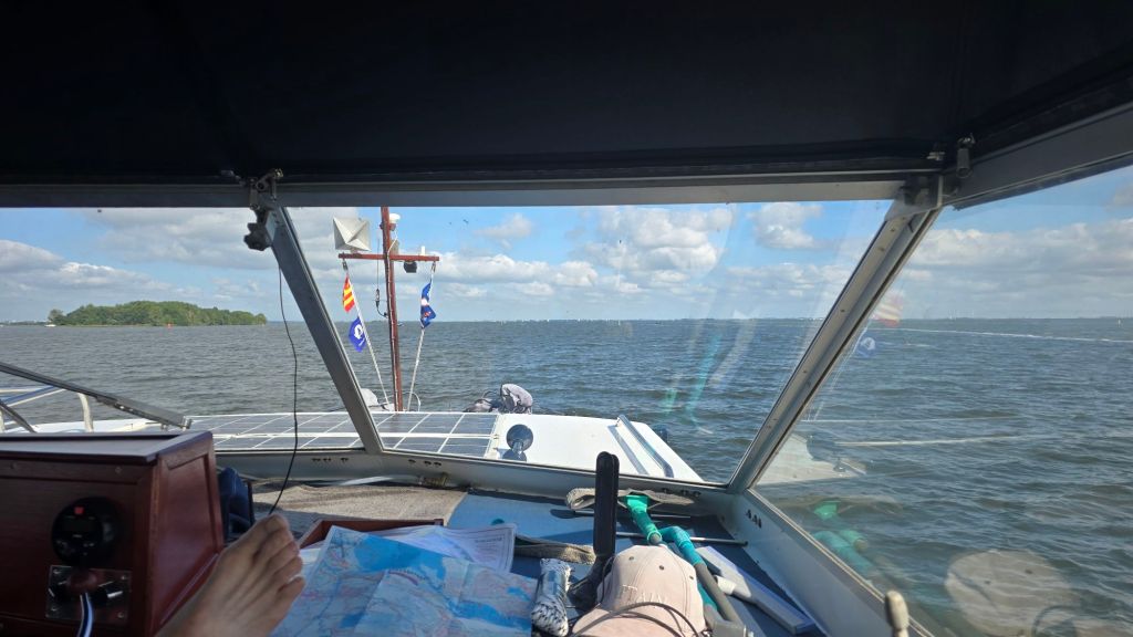 We genieten van de zon, het kalme water en een lekker ronkend motortje. Genieten met hoofdletter G.