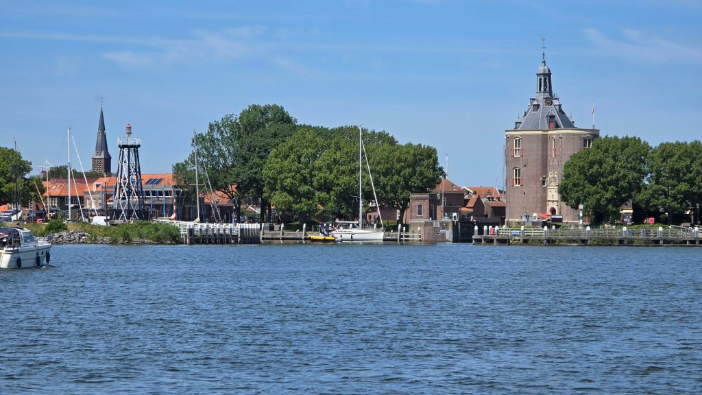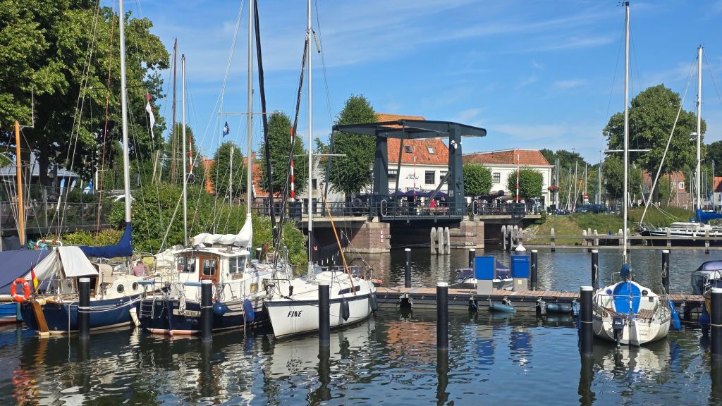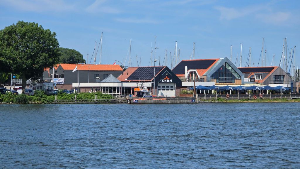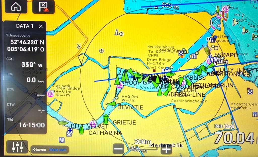 Ook horen we dat de brug bij de Stevinsluizen niet draait wegens reparaties. Dat is bij Den Oever. Die brug kunnen wij alleen onderdoor als het laag water is. Maar mochten we over het Wad terug naar Den Helder willen moet dat juist met hoogwater. 😞 Dat is van later zorg. Dan komt via de marifoon door dat ook de Lorentzsluis bij Kornwerderzand buiten gebruik is door storing. Hebben wij niets mee te maken, toch lastig voor andere watersporters en beroepsvaartuigen.
