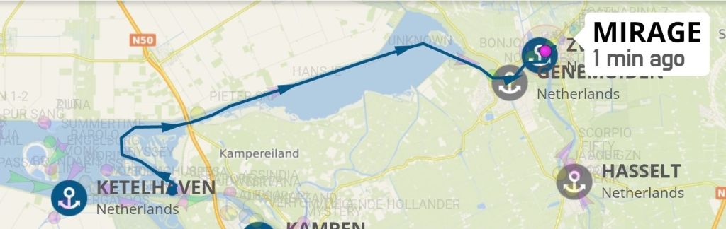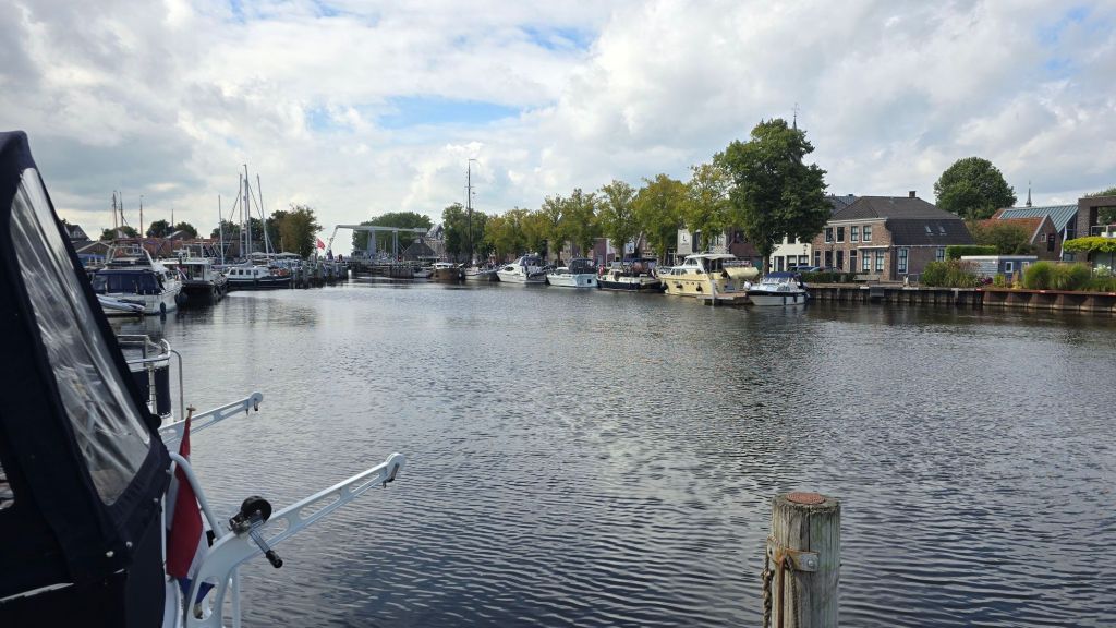 We liggen hier heerlijk uit de wind. Dan bellen we Engel op dat we in de buurt zijn. Komen we morgen naar Meppel of kom je naar ons. Ze wacht niet op morgen maar stapt meteen in de auto en een half uurtje later zit ze lekker aan de koffie met slagroom op ons achterdek.