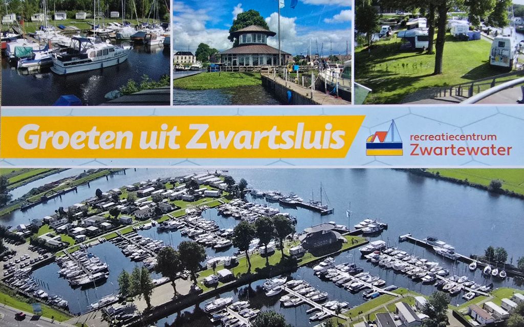 We kijken nog weer eens op de kaart, waar kunnen we nog heen, hoe is het weer en blijft dat zo. Wat willen we nog. We besluiten om terug te varen en dan binnendoor naar Kraggenburg te gaan. Het heeft de hele nacht en ochtend geregend. Wanneer we Zwartsluis uitvaren merken we nog meer hoe lekker plekje we in de haven hadden. Het is gemeen guur koude wind. Alle flappen dicht. Als we dan een stuk terug varen over het Zwarte water staat de vlag strak en voelt het onder de tent zelfs koud aan. Dan komen we bij de Voorstersluis. Na het oproepen hebben we een half uur moeten wachten voor we geschut werden. Dan is het nog 15 minuten varen en meren we af in de jachthaven van Kraggenburg. Bij de sluis zijn we 4.30 m gezakt, nu liggen we heerlijk beschut tussen de bomen. Dan komt de zon er weer doorpiepen en binnen no-time is het binnen weer 24 graden.